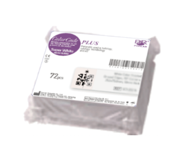 The PorLab ColorCode PLUS microscope slides are loaded with a permanent strong positive charge which reliably tightens tissue sections and cells to the glass slide. The PorLab ColorCode PLUS microscope slides are proved to have good performance in both acidic and basic antigen-retrieval liquid. All the standard PorLab ColorCode PLUS microscope slides are supplied with 1 light color-coating on 1 Side at 1 End, the color-coating is 20mm in depth and resistant to chemicals & stains that are commonly utilized in laboratories.